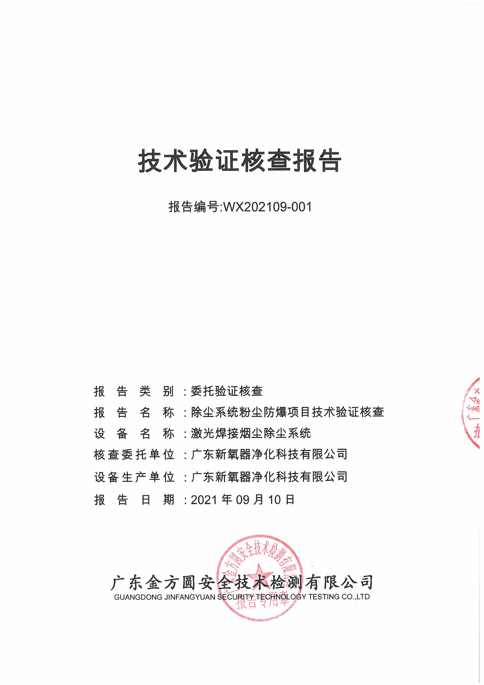 2021年验证通过并获得金属粉尘防爆验证核查报告