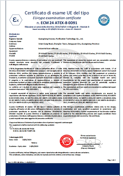 2023年获得防爆除尘设备CE证书