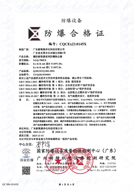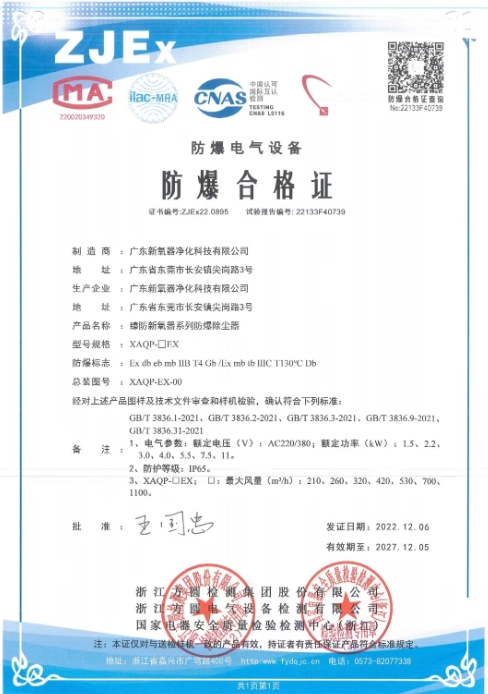 2023年新氧器臻防获得CQCEX防爆合格证